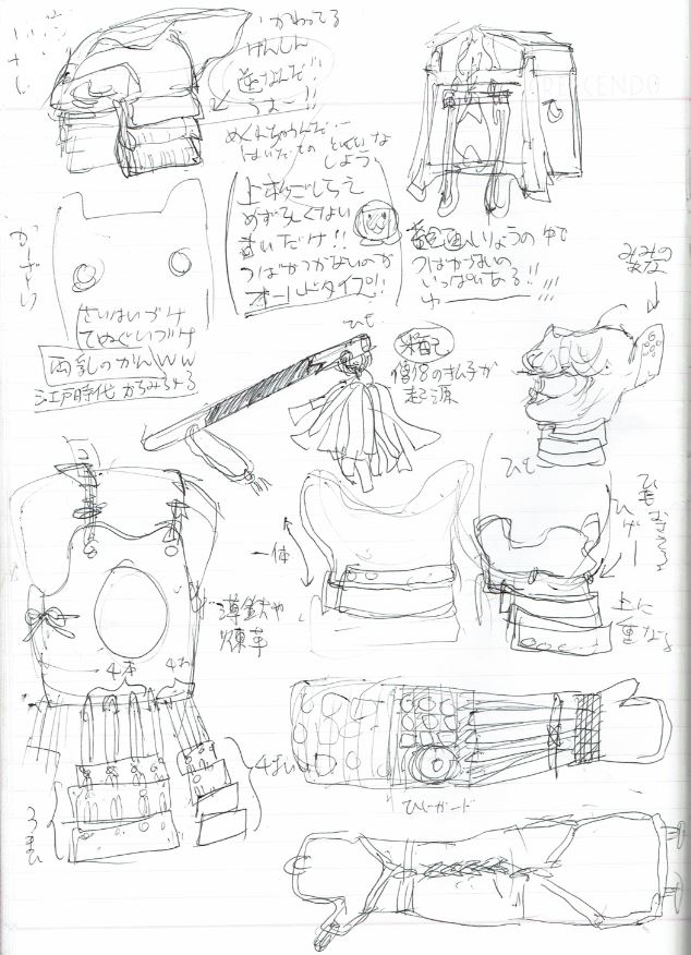 板橋区立郷土資料館の特別展「武具繚乱」にいってきた! 未分類 2017年06月20日 0 Edit ちょーーっと前に板橋区立郷土資料館の特別展「武具繚乱」その展示解説の日にお邪魔したら、今までわっかんないな~~と思ってる部分をめっちゃお答えいただいてアハ体験がすごかったです。とりあえずこの汚いメモを…(どうぞ)甲冑のポケットの正式名称は「鼻紙袋」篭手に付いたしゃもじ的な奴は「瓢(ふくべ)篭手」という名前だそうで。そして瓢(ふくべ)篭手は「何でこんな形なのか分からない」のだそうです。分からないという事が分かるのも安心します。江戸の甲冑は遊び心満載でそこが小物入れになってる奴があるそうです ※参考(展示にはない)謙信の愛用の刀は鍔のないカッコイイがあったりして、今まで自分の中でてっきり『拙者は鍔を恃んで仕合しておらぬ(キリッ』的な「あるものを特別に取り払って危険な美学フヒヒ」なのかと思っていたのですが、いやいやそれは特別なものではなく、単なる古いタイプだよ、と。昔の絵巻とかには鍔のないもの沢山書かれているよ、と言っていただけてそっかーと思ったり。何故古式なものを愛用してたかは…やっぱ趣味なんですかね?古色を愛する謙信?と思ったり。ただ一つちょっとこれは美学なんでないかというものがありまして…展示の入り口近くにあった大きな金色の甲冑の草摺部分、上の板の下の板に重ねていくというのが『特異な手法』らしいのですね。考えてみれば上に重ねないと板を泊めない限りビランビランする。 なにがいいたいかというと、ふと思い出したのが謙信の金色イカ兜の横が下重ねだという事ですよ…このビラビラは美学なのだと思うと興奮しますわ! 時々具足についてる乳首ピアスみたいなのなんなのか、と気になってたのですがそれも名前が判明、「両乳の環(りょうちちのかん)」!!!!そのまんまジャネーカ!あとは面頬の機能や江戸時代の甲冑の面白さなどなど沢山解説いただいてアハ体験がすごいすばらしい解説&展示でした